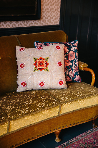 You could choose to make the large blanket (approx. 48"x60") or you might want to make a smaller one using fewer motifs or less repeated blocks. You might want to make a bag, a cushion, or a shawl for example.